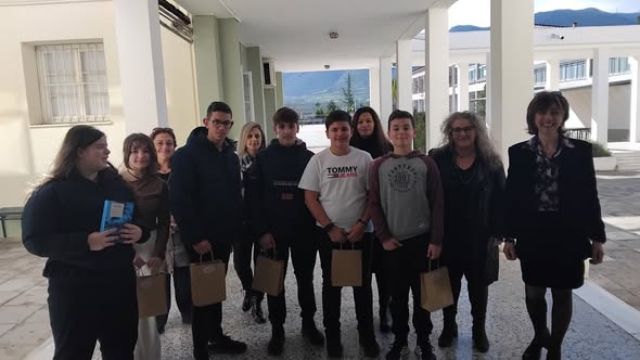 Οι μαθητές που βρήκαν το φλουρί πήραν ως δώρο από ένα βιβλίο. Τυχερή εκπαιδευτικός, η κ. Γ. Μπαλάφα.