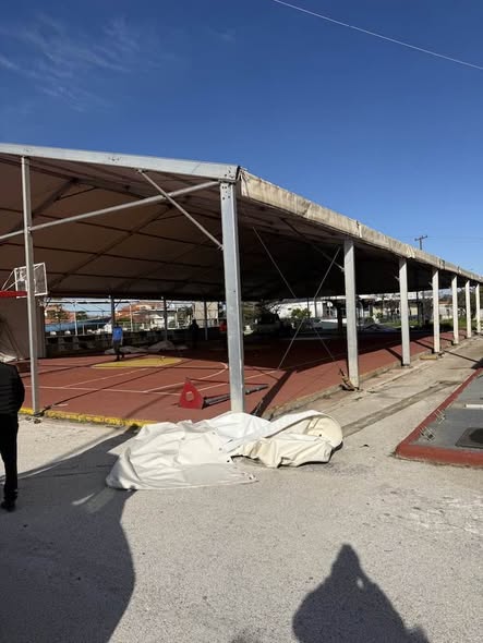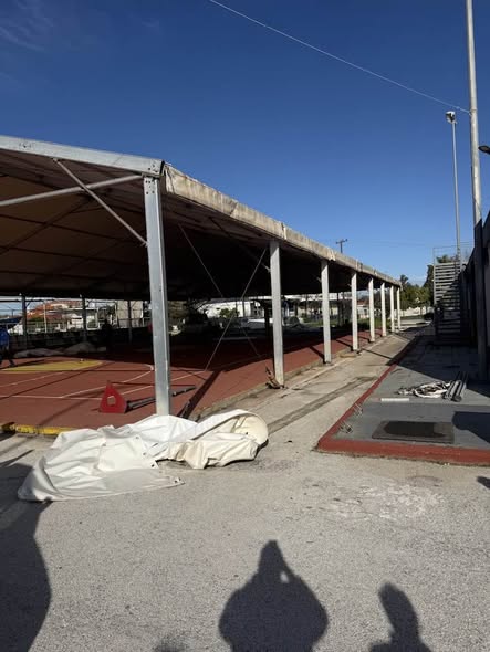 Ξεκινάμε ξηλώνοντας ..Από σήμερα ξεκινάει το έργο της κατασκευής του κλειστού γυμναστηρίου τύπου μπαλόνι ..