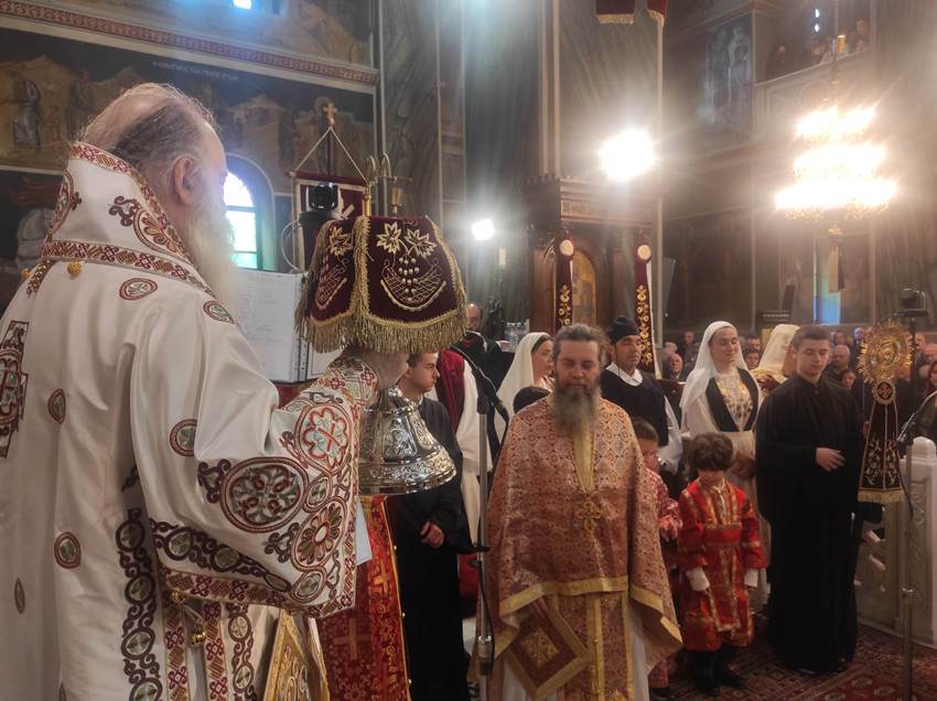 Ανήμερα της εορτής Τετάρτη 11 Φεβρουαρίου 2026, τελέσθηκε ο Όρθρος και η Πανηγυρική Αρχιερατική Θ. Λειτουργία, προεξάρχοντος του Σεβ. Μητροπολίτου κ. Παύλου πλαισιωμένου από τον Πανοσ. Αρχιμ. π. Αμβρόσιο Γκουρβέλο, εκ της Ι. Μητροπόλεως Πατρών, τον Ιεροκήρυκα της Ι. Μητροπόλεως Κορίνθου Πανοσ. Αρχιμ. π. Άνθιμο Παπαλεξόπουλο και πλήθους Ιερέων εκ των Αρχιερατικών Περιφερειών Ξυλοκάστρου και Ευρωστίνης. Προ του πέρατος της Θ. Λειτουργίας ο Σεβασμιώτατος χειροθέτησε Αναγνώστη τον Δεξιό Ιεροψάλτη του Ι. Ναού κ. Λεωνίδα Δρακόπουλο, δίδοντάς του εκ μέρους του Εκκλησιαστικού Συμβουλίου μια τιμητική πλακέτα για την τεσσαρανταετή διακονία του.