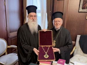 Ο Σεβασμιώτατος ζήτησε και έλαβε την ευχή της Α.Θ. Παναγιότητος του Οικουμενικού Πατριάρχου κ.κ. Βαρθολομαίου, ο οποίος τον συνεχάρη για την επάξια εκλογή του από την Ιερά Σύνοδο της Ιεραρχίας της Αγιωτάτης Εκκλησίας της Ελλάδος σε Μητροπολίτη της αρχαίας και Αποστολικής Εκκλησίας της Κορίνθου, τού προσέφερε αρχιερατικό εγκόλπιο με τον Απόστολο Παύλο και του ευχήθηκε καλλίκαρπη και μακρά Ποιμαντορία.
