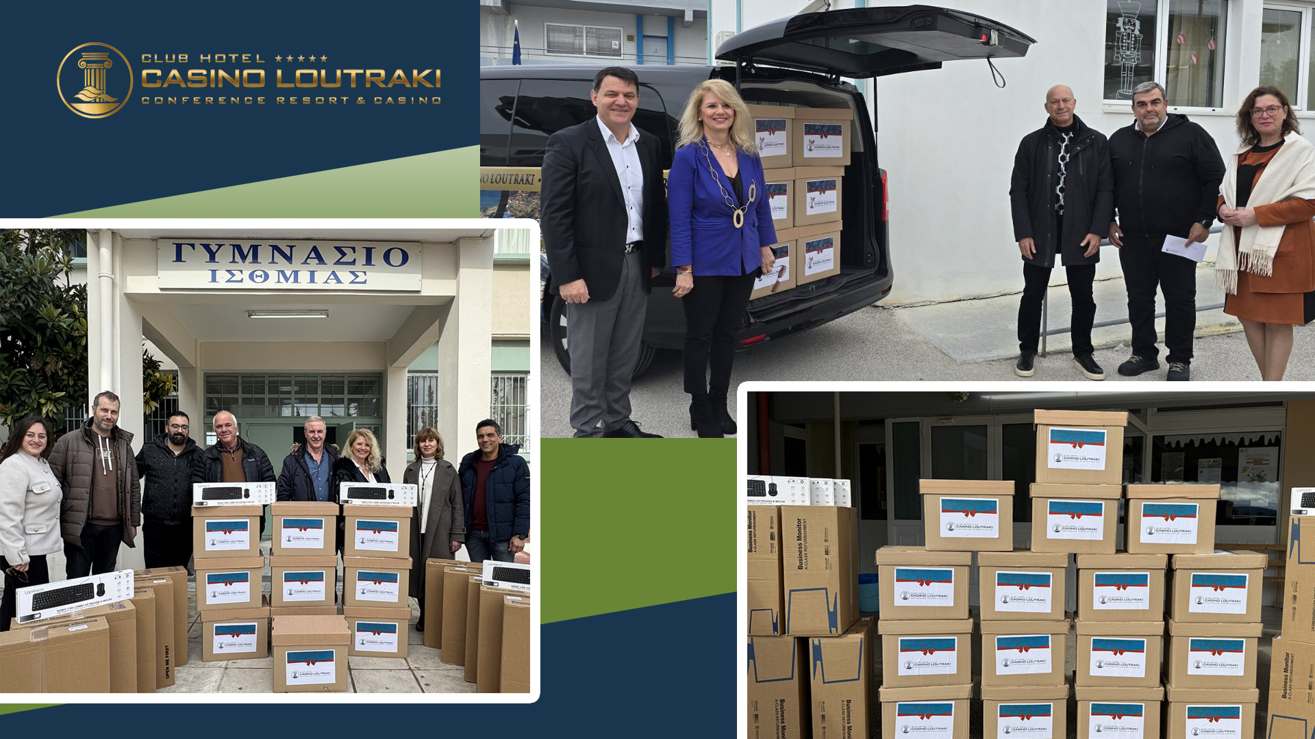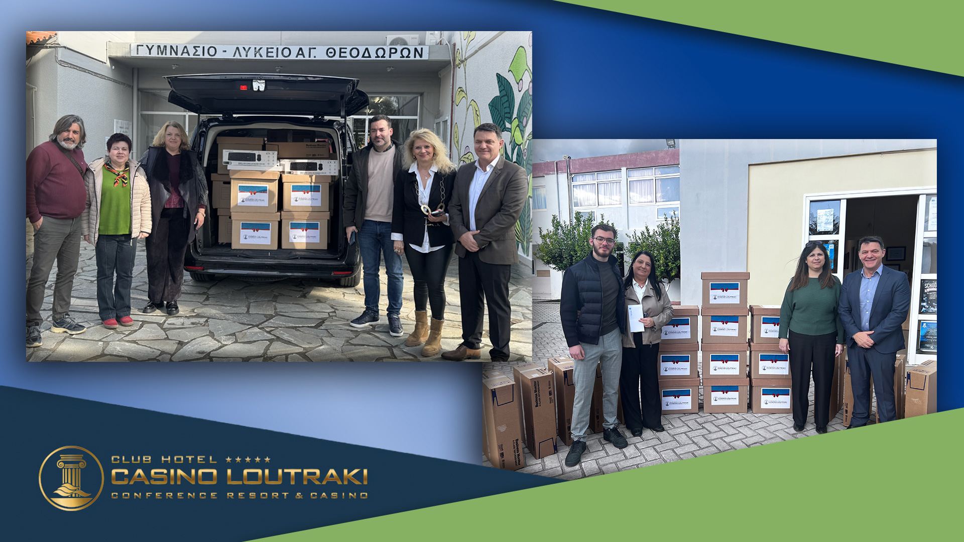 Μια ολοκληρωμένη παρέμβαση με ουσιαστική συμβολή στην εκπαίδευση και την τοπική κοινωνία ολοκλήρωσε η Club Hotel Casino Loutraki, παραδίδοντας συνολικά 100 ηλεκτρονικούς υπολογιστές σε σχολεία και εκπαιδευτικές δομές του Δήμου Λουτρακίου – Περαχώρας – Αγίων Θεοδώρων και της ευρύτερης Κορινθίας.