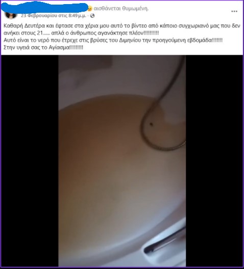 Ακολουθεί ανάρτηση σε ΜΚΔ και βίντεο κατοίκου του Διμηνιού που αναρτήθηκε πριν από 15 μέρες περίπου.Το νερό όπως θα δείτε στην μπανιέρα είναι γεμάτο λάσπη.