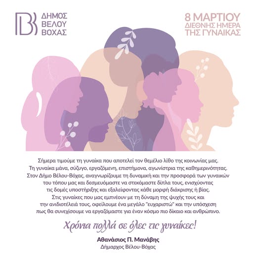 Το μήνυμα του δήμου Βέλου Βόχας για την Παγκόσμια Ημέρα της Γυναίκας