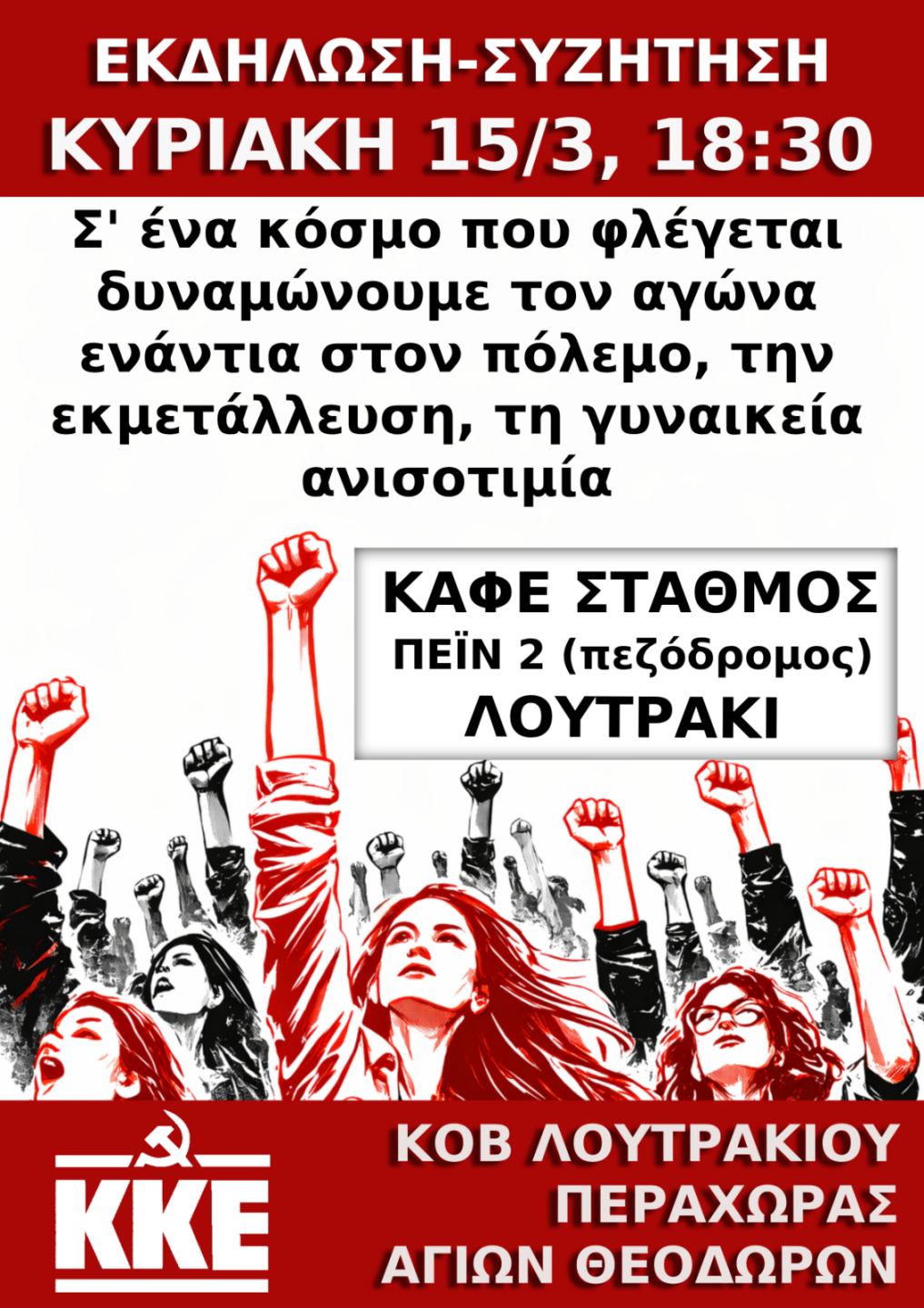 Η κομματική Οργάνωση Λουτρακίου - Περαχώρας - Αγίων Θεοδώρων διοργανώνει συζήτηση με θέμα: