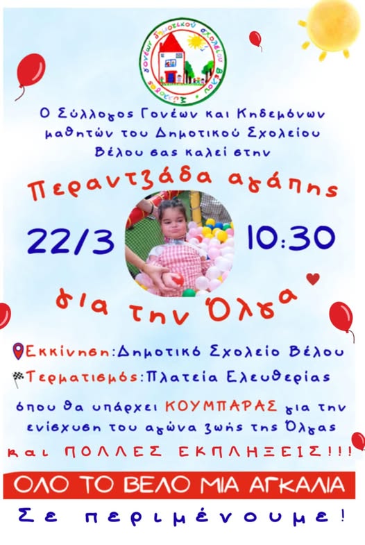 ΚΟΡΙΝΘΙΑΚΑ ΚΟΡΙΝΘΙΑ ΔΗΜΟΣ ΒΕΛΟΥ ΒΟΧΑΣ ΒΕΛΟΣ ΔΗΜΟΤΙΚΟ ΣΧΟΛΕΙΟ ΕΘΕΛΟΝΤΙΚΗ ΔΡΑΣΗ Βέλος: Περατζάδα αγάπης για την Όλγα στις 22 Μαρτίου στις 10:30 14/03/2026 @ 10:26 Copied to clipboard Διαβάστε επίσης 14/03/2026 @ 12:07 Δήμος Σικυωνίων: Με εκδήλωση για την καταναλωτική συνείδηση ξεκινούν σήμερα οι «Σικυώνιες Εαρινές Διαδρομές» 14/03/2026 @ 11:18 Νεμέα: Υποχρεωτικός καθαρισμός οικοπέδων έως τις 15 Ιουνίου 14/03/2026 @ 09:00 Εξιχνιάστηκαν 8 περιπτώσεις κλοπών και απόπειρας αυτών στην Κορινθία 13/03/2026 @ 19:00 Λουτράκι: Συνεδριάζει το Δημοτικό Συμβούλιο την Τετάρτη 18 Μαρτίου 13/03/2026 @ 18:10 Υπουργική απόφαση «σταθμός» του Νίκου Ταγαρά - Έγκριση πολεοδόμησης του πρώην στρατοπέδου Καλογερογιάννη Ροή ειδήσεων 14/03/2026 @ 12:07 Δήμος Σικυωνίων: Με εκδήλωση για την καταναλωτική συνείδηση ξεκινούν σήμερα οι «Σικυώνιες Εαρινές Διαδρομές» 14/03/2026 @ 11:18 Νεμέα: Υποχρεωτικός καθαρισμός οικοπέδων έως τις 15 Ιουνίου 14/03/2026 @ 11:07 Δράση για την ισότητα και την αντιμετώπιση της ενδοοικογενειακής βίας στην Τρίπολη 14/03/2026 @ 10:26 Βέλος: Περατζάδα αγάπης για την Όλγα στις 22 Μαρτίου 14/03/2026 @ 10:19 Ελληνόκτητο πλοίο με 10 Έλληνες ναυτικούς χτυπήθηκε από πύραυλο ανοιχτά του Νοβοροσίσκ 14/03/2026 @ 09:00 Εξιχνιάστηκαν 8 περιπτώσεις κλοπών και απόπειρας αυτών στην Κορινθία 13/03/2026 @ 19:00 Λουτράκι: Συνεδριάζει το Δημοτικό Συμβούλιο την Τετάρτη 18 Μαρτίου 13/03/2026 @ 18:10 Υπουργική απόφαση «σταθμός» του Νίκου Ταγαρά - Έγκριση πολεοδόμησης του πρώην στρατοπέδου Καλογερογιάννη 13/03/2026 @ 17:56 Αναβάλλεται η προγραμματισμένη Γενική Συνέλευση του Ολυμπιακού Λουτρακίου 13/03/2026 @ 17:13 Βέλο Βόχα: Καύση κλαδεμάτων και υπολειμμάτων καλλιεργειών 13/03/2026 @ 17:01 Ισχυρός σεισμός 6,5 Ρίχτερ στη Χιλή 13/03/2026 @ 16:50 Εξαρθρώθηκε εγκληματική οργάνωση, τα μέλη της οποίας διακινούσαν ποσότητες ναρκωτικών στην Αττική και στην Αργολίδα 13/03/2026 @ 16:14 Χρίστος Δήμας: Ο ΒΟΑΚ ήταν η τελευταία εκκρεμότητα της Πολιτείας όσον αφορά στους αυτοκινητόδρομους 13/03/2026 @ 15:56 Δενδροφύτευση στον Δήμο Κορινθίων – Ελάτε να πράσινίσουμε την περιοχή μας! 13/03/2026 @ 13:35 Οπαδικό επεισόδιο ή επίθεση λόγω των «αυτόκλητων τιμωρών»; – Τι ψάχνει η ΕΛ.ΑΣ. για τη δολοφονία του 20χρονου στην Καλαμαριά 13/03/2026 @ 11:13 Δήλωση Παύλου Γερουλάνου 13/03/2026 @ 11:09 Περισσότεροι από 1.000 Αρκάδες στην εκδήλωση του Υφυπουργού Παιδείας, Θρησκευμάτων και Αθλητισμού Κωνσταντίνου Βλάση για την Αρκαδία 13/03/2026 @ 11:02 Τρία χρόνια μετά τα Τέμπη: Μανιάτης και Αρναούτογλου καταγγέλλουν ευθύνες και καθυστερήσεις. 13/03/2026 @ 10:39 H My Grand Road και το 1ο Σύστημα Προσκόπων Ελευσίνας υλοποίησαν Δράση Οδικής Ασφάλειας στο ΕΕΕΕΚ Ελευσίνας (ΦΩΤΟ) 13/03/2026 @ 09:49 ΚΟΡΙΝΘΟΣ: Ο Ανδρέας Πούλος για τον ΑΟΣΑΚ Δείτε επίσης 13/03/2026 @ 13:35 Οπαδικό επεισόδιο ή επίθεση λόγω των «αυτόκλητων τιμωρών»; – Τι ψάχνει η ΕΛ.ΑΣ. για τη δολοφονία του 20χρονου στην Καλαμαριά 13/03/2026 @ 11:13 Δήλωση Παύλου Γερουλάνου 13/03/2026 @ 09:49 ΚΟΡΙΝΘΟΣ: Ο Ανδρέας Πούλος για τον ΑΟΣΑΚ 13/03/2026 @ 09:46 Δήλωση Χάρη Δούκα για τη διαγραφή του Οδυσσέα Κωνσταντινόπουλου 13/03/2026 @ 08:55 Δήλωση Οδυσσέα Κωνσταντινόπουλου 13/03/2026 @ 08:50 Εκδήλωση για την Τεχνητή Νοημοσύνη και τα Παιδιά στην Κόρινθο 13/03/2026 @ 08:45 KOΡΙΝΘΙΑ:Εκλογή συνέδρων την Κυριακή 15 Μαρτίου-Δείτε που θα στηθούν κάλπες 12/03/2026 @ 13:30 ΠΑΣ ΚΟΡΙΝΘΟΣ:Συγχαρητήρια σε Καλαμάτα για την άνοδο στην Σούπερ Λίγκα