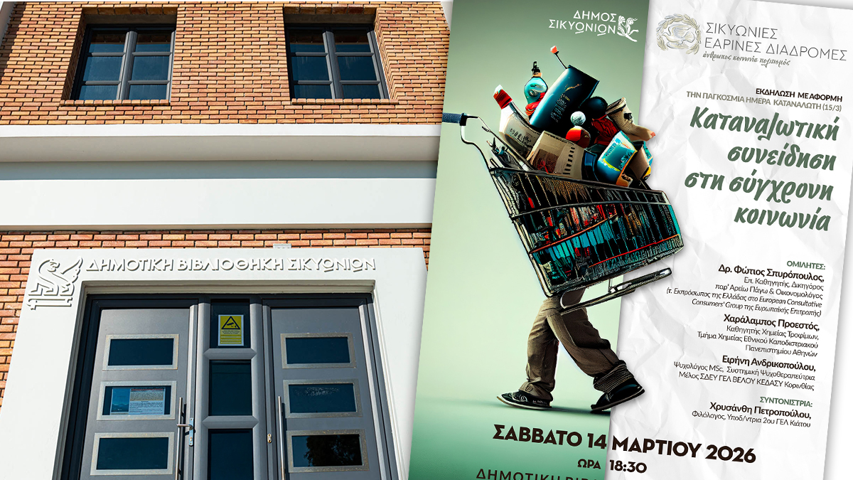Σήμερα, Σάββατο 14 Μαρτίου 2026, στη Δημοτική Βιβλιοθήκη Σικυωνίων στις 18:30, θα πραγματοποιηθεί η επίσημη έναρξη του νέου κύκλου δράσεων «Σικυώνιες Εαρινές Διαδρομές: Άνθρωπος – Κοινωνία – Πολιτισμός».