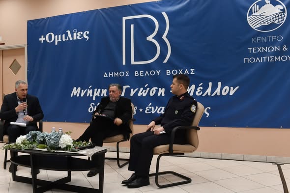 Ο Ψυχολόγος Αξιωματικός της Γενικής Περιφερειακής Αστυνομικής Διεύθυνσης Πελοποννήσου συμμετείχε σε εκδήλωση που διοργάνωσε ο Δήμος Βέλου-Βόχας, η οποία πραγματοποιήθηκε στην αίθουσα εκδηλώσεων του Δήμου, με θέμα «Το σχολείο, η παραβατικότητα και η παιδική βία».