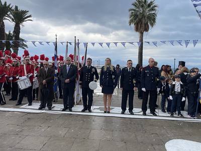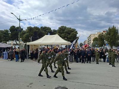 Ο Σεβασμιώτατος Μητροπολίτης, συνοδευόμενος από Ιερείς της πόλεως Κορίνθου, ολοκλήρωσε το εορταστικό πρωινό παριστάμενος στην καθιερωμένη Μαθητική και Στρατιωτική Παρέλαση.