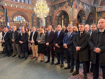 Την ίδια ημέρα στο Λουτράκι, στον Μητροπολιτικό Ι. Ναό Τιμίου Προδρόμου, ο Θεοφιλέστατος Επίσκοπος Κεγχρεών κ. Αγάπιος λειτούργησε και τέλεσε την Επίσημη Δοξολογία, παρουσία του Εκπροσώπου του Δημάρχου Λουτρακίου, Περαχώρας και Αγίων Θεοδώρων Αντιδημάρχου κ. Αναστασίου Σακελαρίου και εκπροσώπων Πολιτικών, Στρατιωτικών και λοιπών Αρχών.