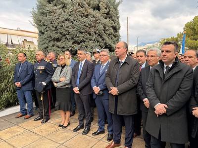 Μετά το πέρας της Θ. Λειτουργίας και της Δοξολογίας, μαζί με τους Ιερείς της πόλεως Λουτρακίου, ο Θεοφιλέστατος τέλεσε Επιμνημόσυνη Δέηση στο Ηρώων, στο οποίο έλαβε χώρα και η κατάθεση στεφάνων.