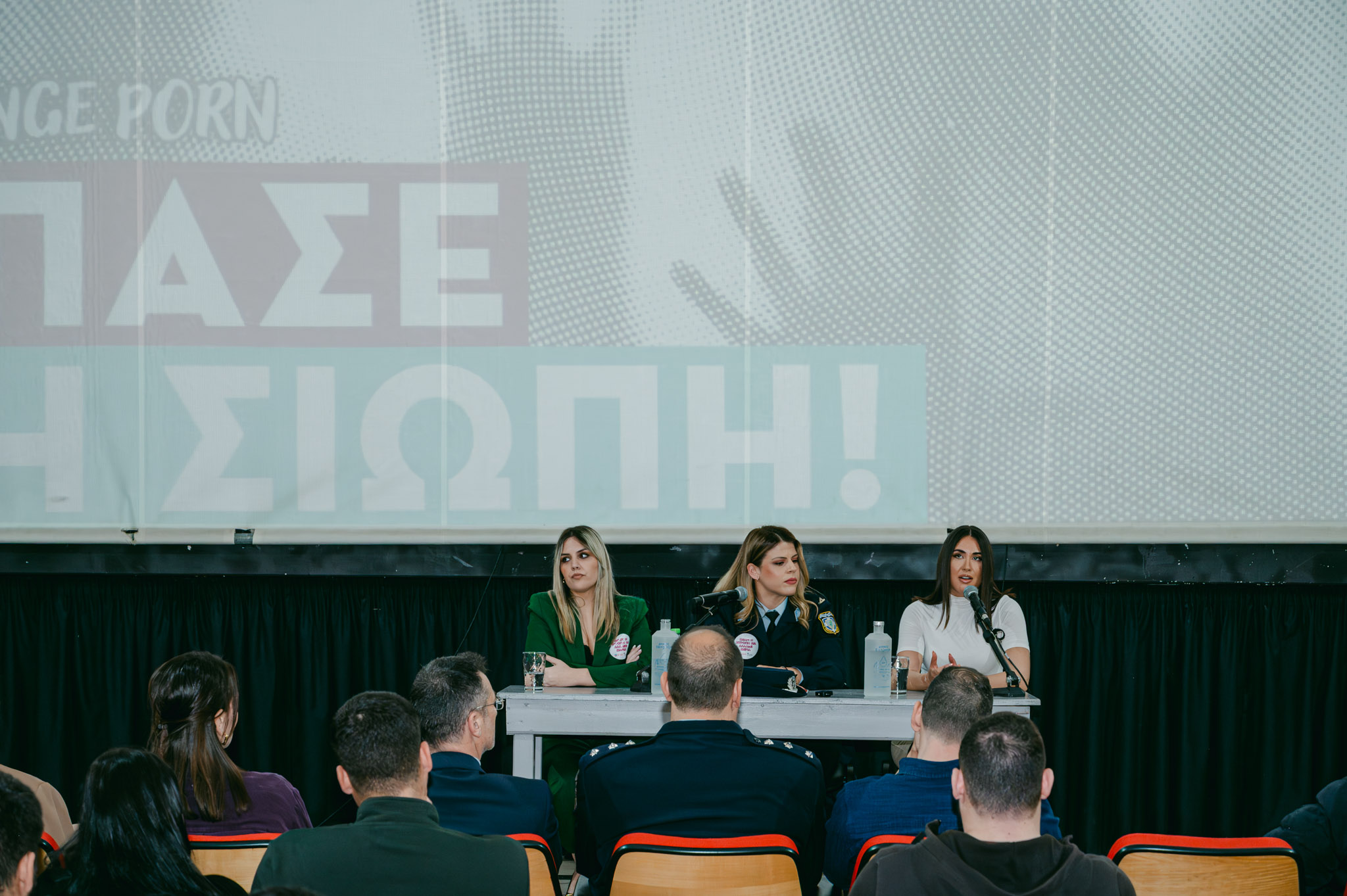 Η εκδήλωση «Σπάσε τη Σιωπή» που πραγματοποιήθηκε την Παρασκευή 3 Απριλίου στο Δημοτικό Θέατρο Κιάτου (Δημαρχείο), δημιούργησε τη δυναμική μιας αφετηρίας για μια οργανωμένη προσπάθεια αντιμετώπισης του revenge porn. Μέσα από τη συνδιοργάνωση του Δημοτικού Συμβουλίου Νέων Σικυωνίων, του Δήμου και του Αστυνομικού Τμήματος Σικυωνίων, διαμορφώθηκε ένα ασφαλές περιβάλλον διαλόγου για τους μαθητές των λυκείων της περιοχής. Οι έφηβοι μοιράστηκαν τους προβληματισμούς τους και κατανόησαν τη σημασία της ενεργού συμμετοχής στη διαμόρφωση μιας υπεύθυνης ψηφιακής κουλτούρας.