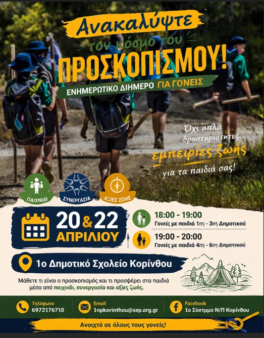 στο 1ο Δημοτικό Σχολείο Κορίνθου κατά τις ώρες 18:00 – 20:00.