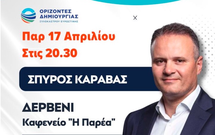 «Οι ΟΡΙΖΟΝΤΕΣ ΔΗΜΙΟΥΡΓΙΑΣ διοργανώνουν ΣΥΝΑΝΤΗΣΗ στο ΔΕΡΒΕΝΙ την Παρασκευή 17 Απριλίου και ώρα 20.30' στο Καφενειο "Η ΠΑΡΕΑ" (Μαρίας Κοντοχριστοπούλου) για να συζητήσουμε τα προβλήματα και τις ευκαιρίες του τόπου μας.» αναφέρεται στην ανακοίνωση.