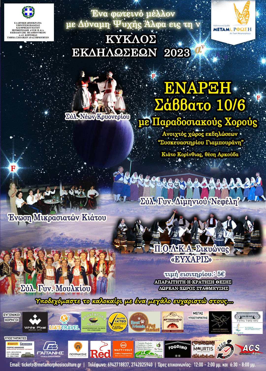 - Αγαπημένοι Φίλοι και Φίλες, με χαρά σας περιμένουμε όλους το Σάββατο 10 Ιουνίου στις νέες μας Πολιτιστικές Εκδηλώσεις – Καλοκαίρι 2023
