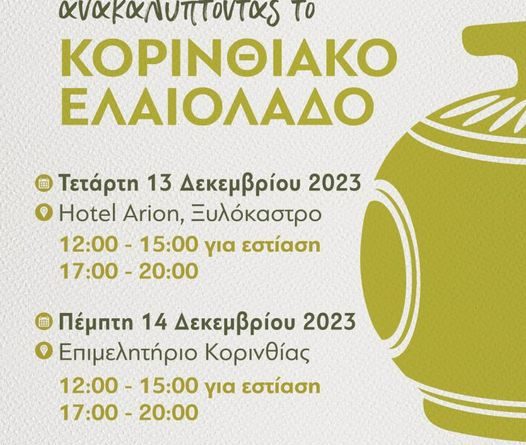 Πέμπτη 14.12.23 | 12:00- 15:00μμ – προσανατολισμένο στην εστίαση -Επιμελητήριο Κορινθίας (Ερμού 2 Κορίνθος)