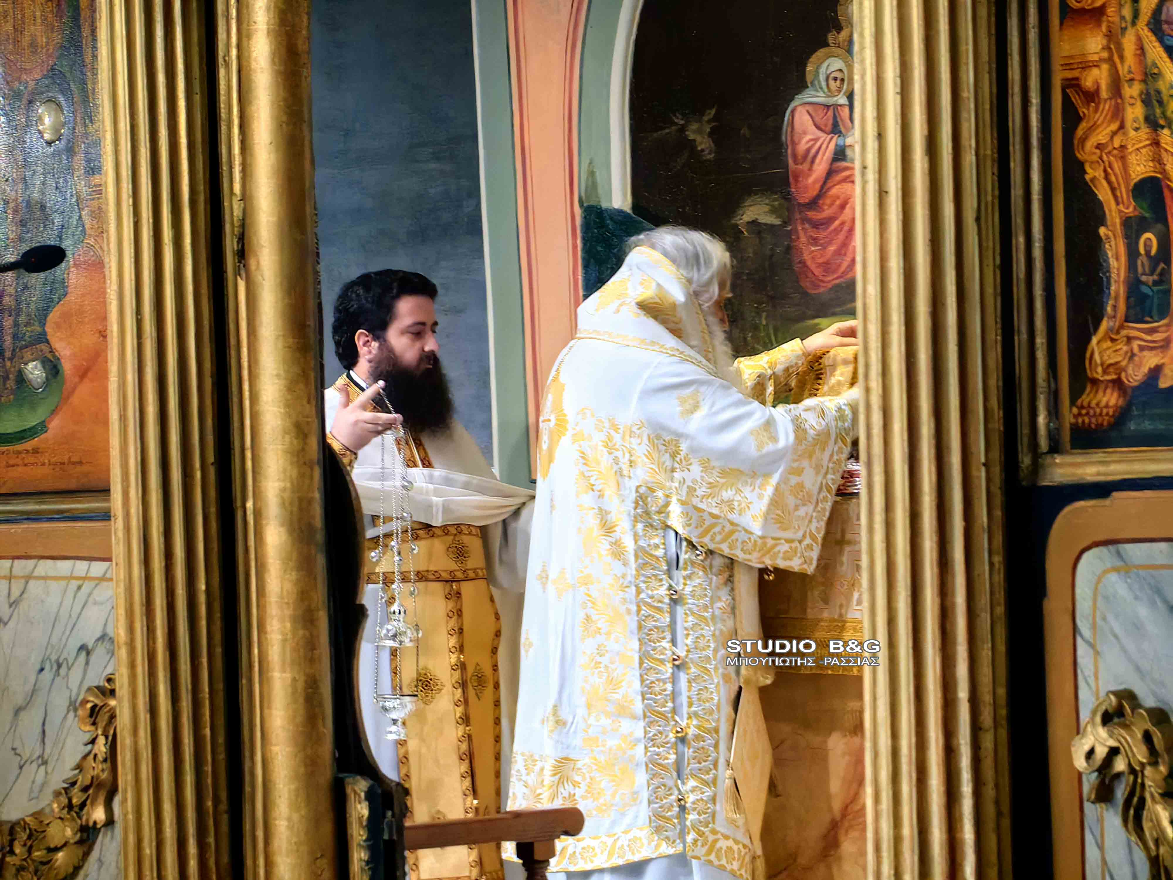 Στην θεία Λειτουργία προεξήρχε ο Μητροπολίτης Αργολίδος κ. Νεκτάριος, ο οποίος κήρυξε και τον θείο λόγο.