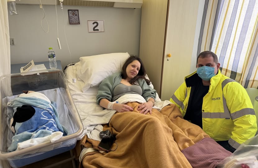 Με τη χρήση υπηρεσιακού οχήματος, μετέφερε με ασφάλεια και ταχύτητα εγκυμονούσα γυναίκα και τον σύζυγό της, καθώς η μέλλουσα μητέρα έχρηζε άμεσης μεταφοράς σε νοσοκομείο για τον τοκετό.